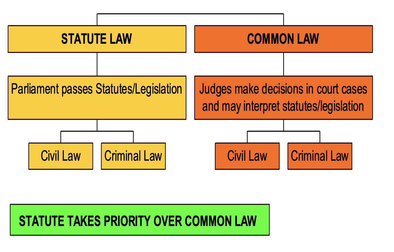 Common law is separate from statute law and does not rely on there being any Act of Parliament (or statute) underpinning it. While statute law is the main sources of law in Australia, the common law remains a vital and developing part of our legal system. Statute law always prevails over common law if there is a conflict.