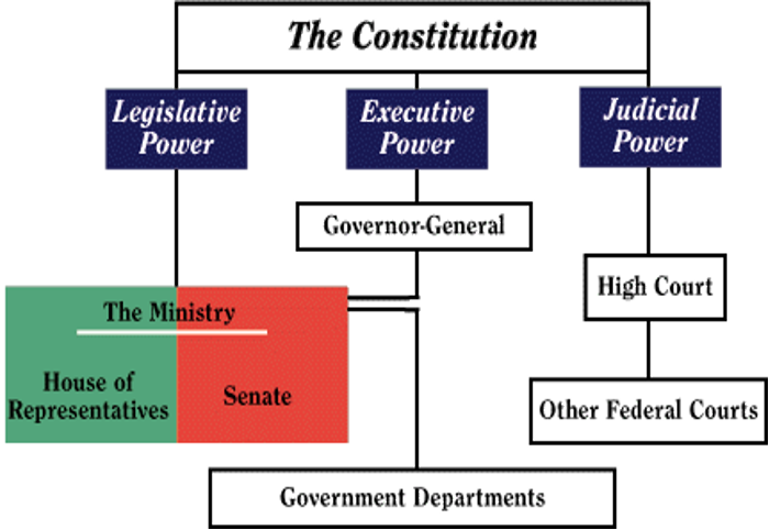 • Federal system – Australia was established as a federal system in 1901. This was achieved by the Australian Constitution.