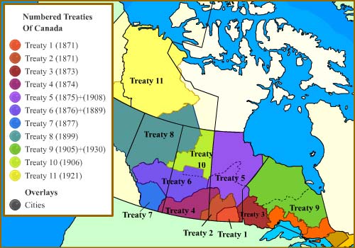 Canada - The Numbered Treaties (or Post-Confederation Treaties) are a series of eleven treaties signed between the Aboriginal peoples in Canada (or First Nations) and the reigning monarch of Canada (Victoria, Edward VII or George V) from 1871 to 1921.